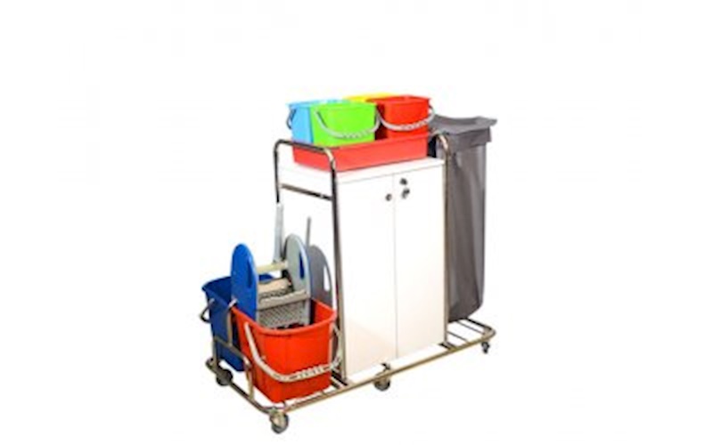 Kat Hizmet Arabası Krom – Brandalı – Temizlik Setli- 4 Kova-Dolaplı
