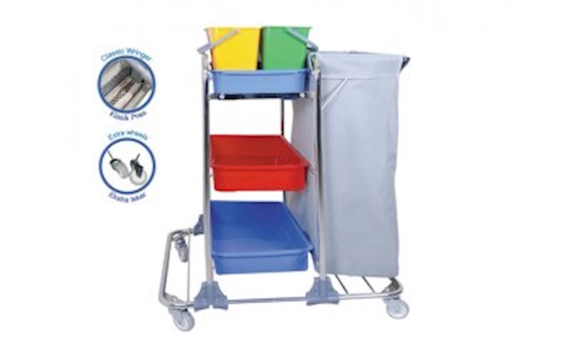 Kat Hizmet Arabası Krom -Tek Brandalı – 3 Katlı – 4 Kovalı